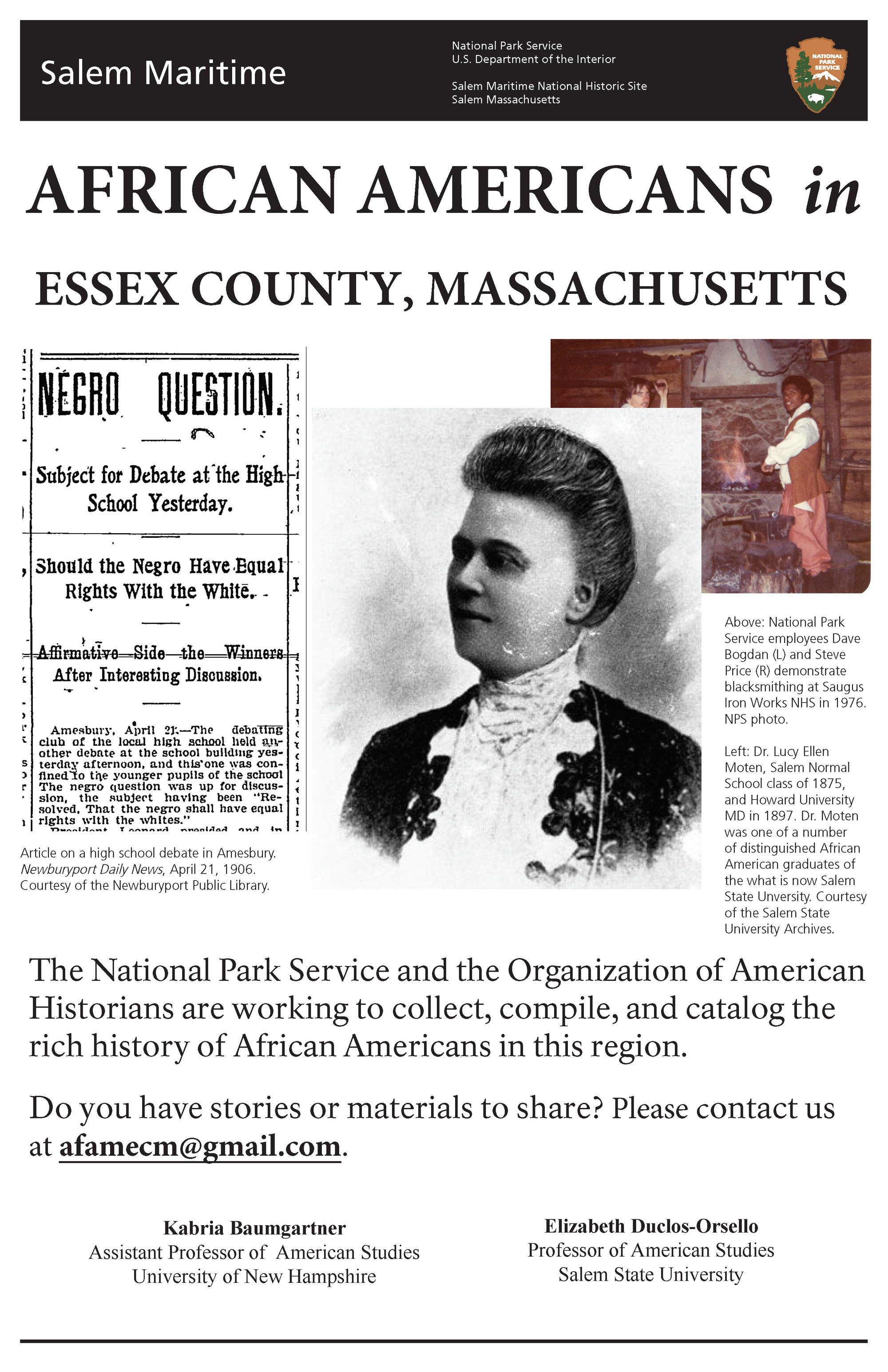 I have been awarded a $100,000 grant from the National Park Service and the Organization of American Historians to support the public humanities project, African Americans in Essex County, MA.